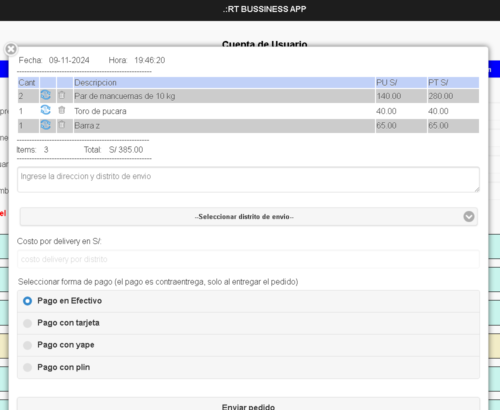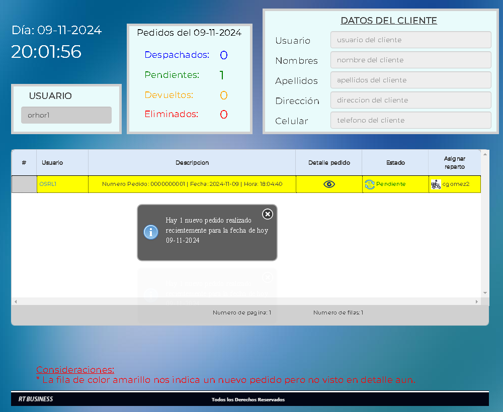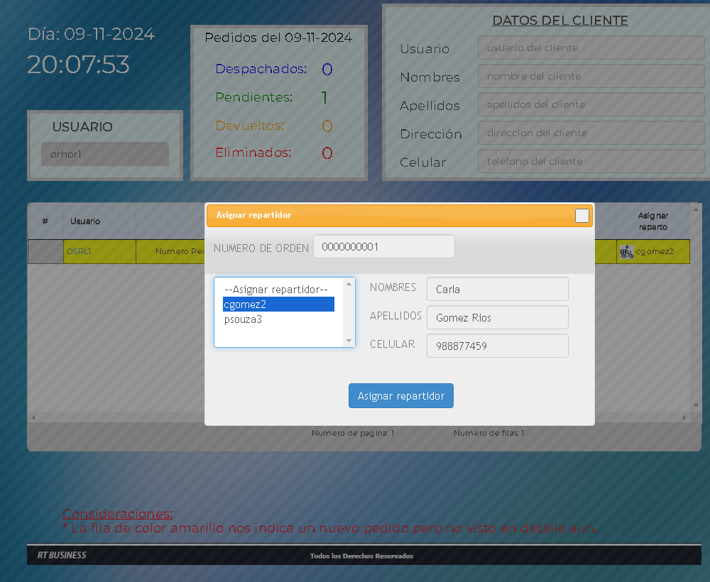 Donde el administrador recibirá todos los pedidos que son enviados por los usuarios en tiempo real,verá el detalle del pedido y asignará el despacho del pedido al repartidor de su empresa.
