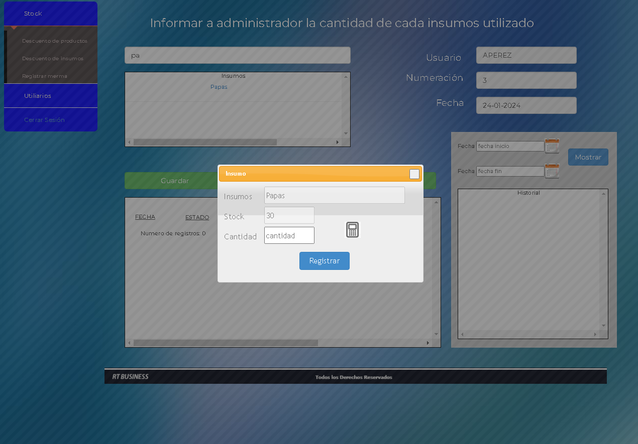- Modulo donde el encargado de cocina enviar´ al administrador todos los insumos que han sido utilizados, así como las mermas que han quedado de los insumos.