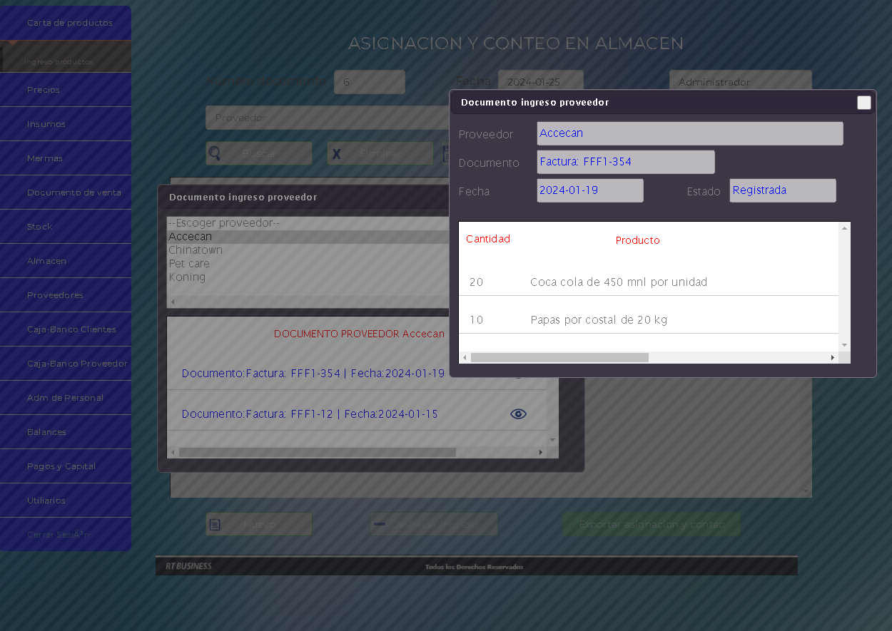 En este módulo usted contará los productos e insumos que han sido adquirido a los proveedores y luego de contados y asignados se procederá a su distribución.